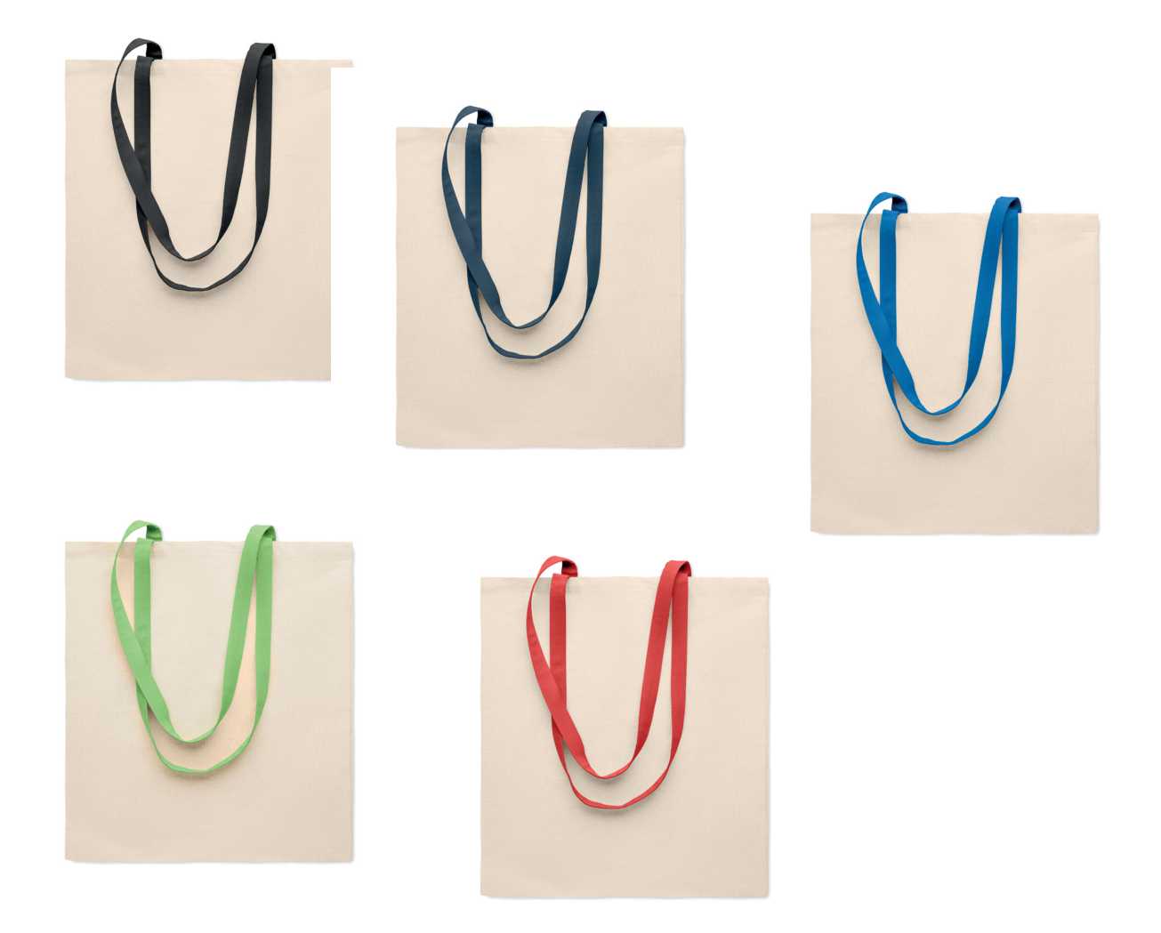 Nákupní taška s dlouhými barevnými uchy z bavlny.